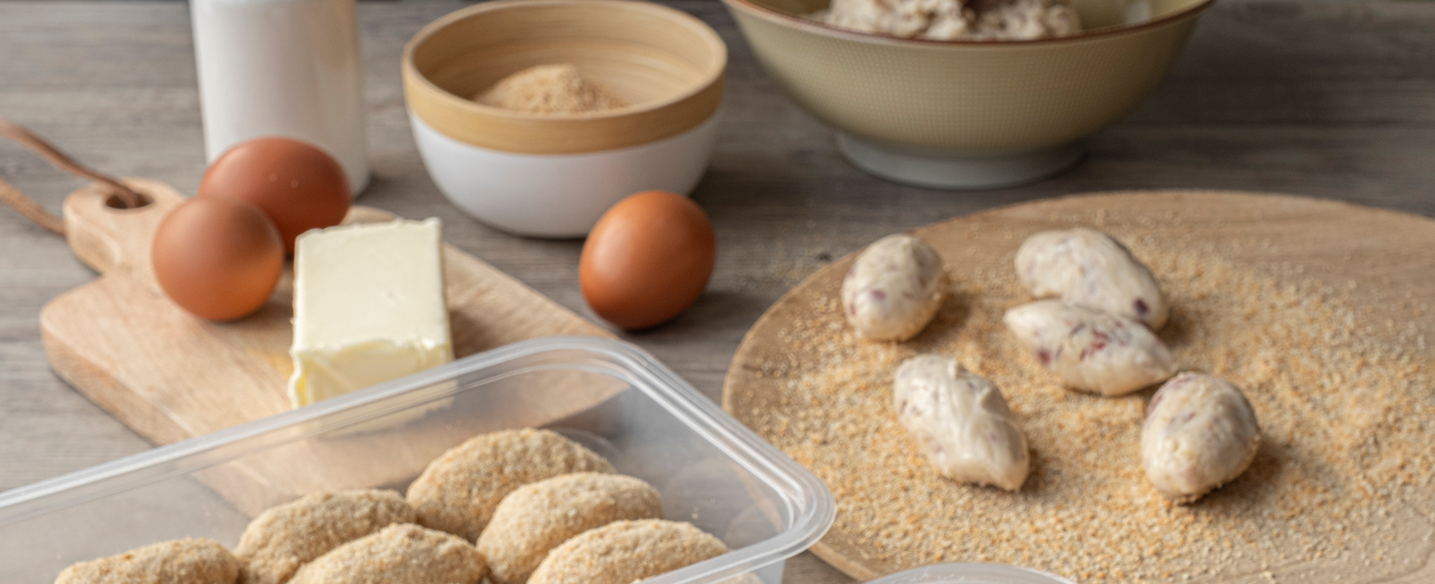 Deliciosa croqueta de gamba y calamar con pollo asado: una armonía perfecta entre tierra y mar. ¡Una croqueta especial, perfecta para un menú de Navidad!